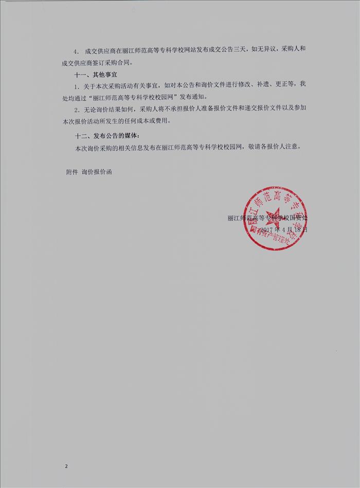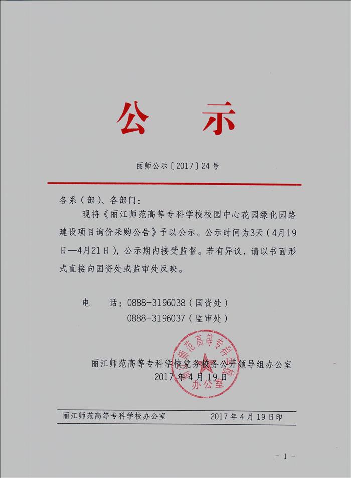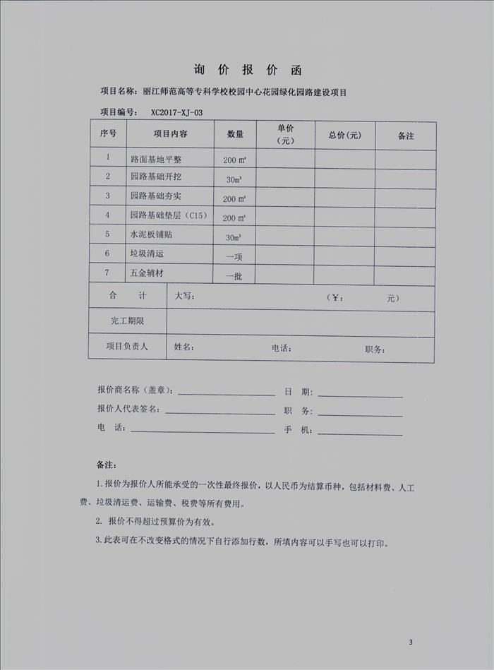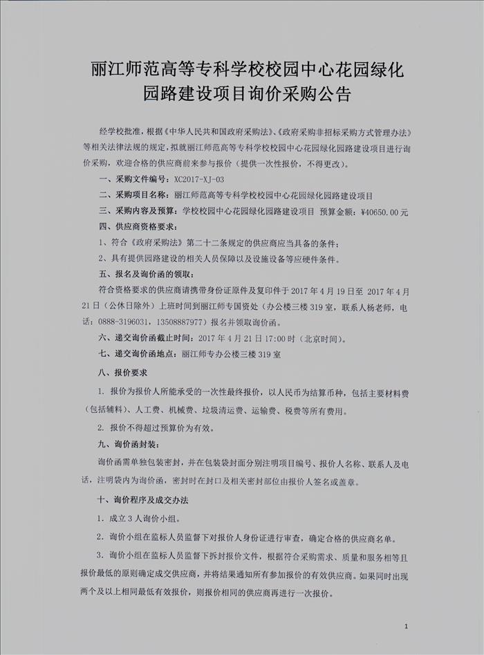 丽江师范高等专科学校校园中心花园绿化园路建设项目询价采购公告