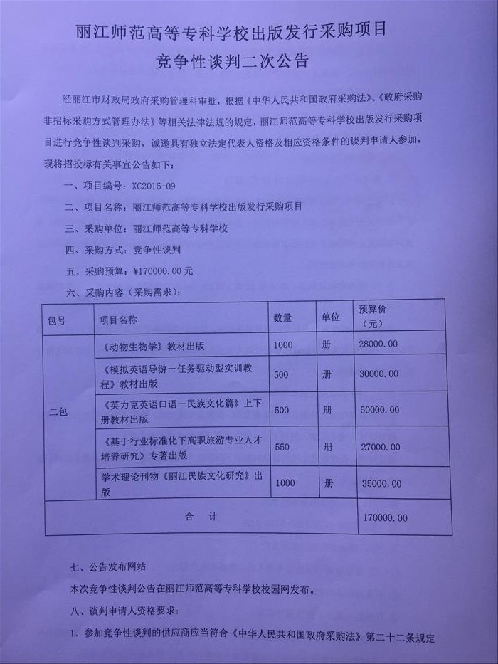 附件1:丽江师范高等专科学校出版发行采购项目竞争性谈判文件.doc