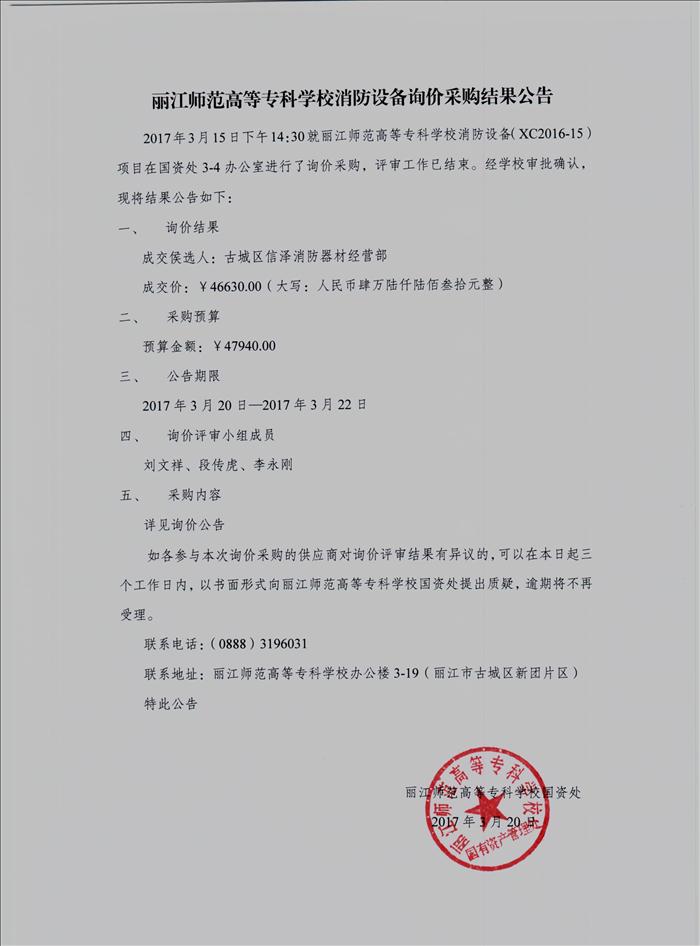 丽江师范高等专科学校运行维护服务(正方教务管理系统)项目竞争性谈判结果公告