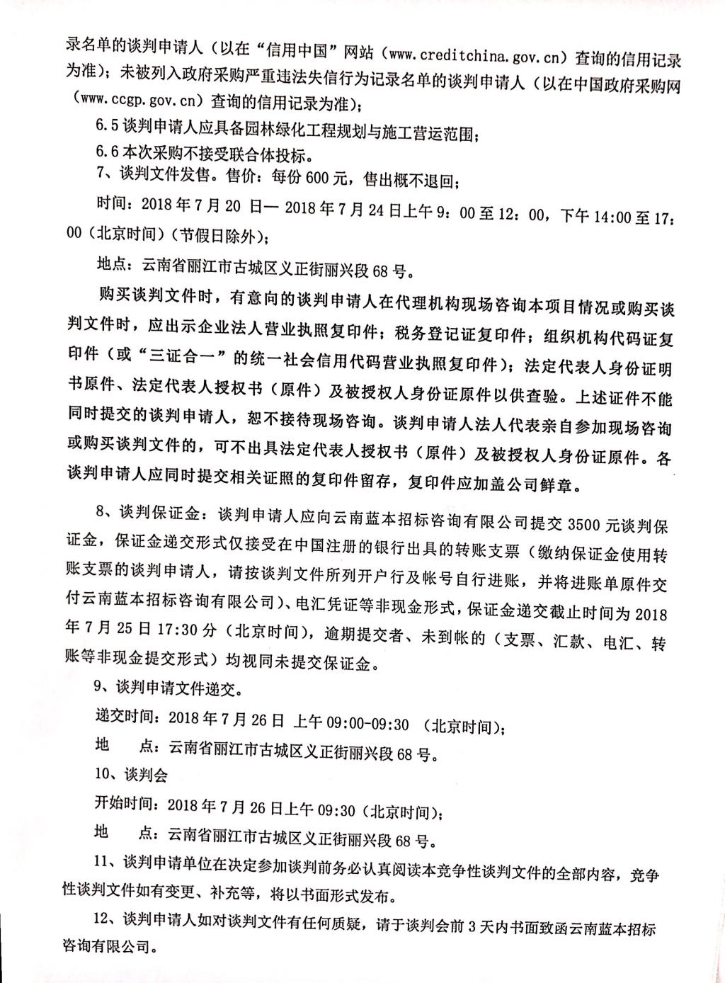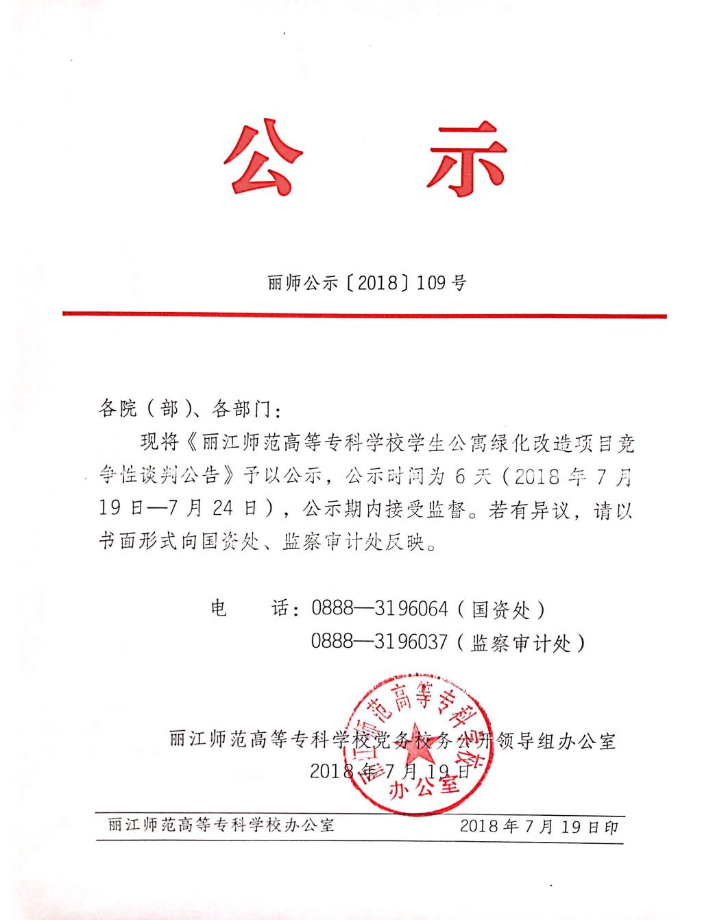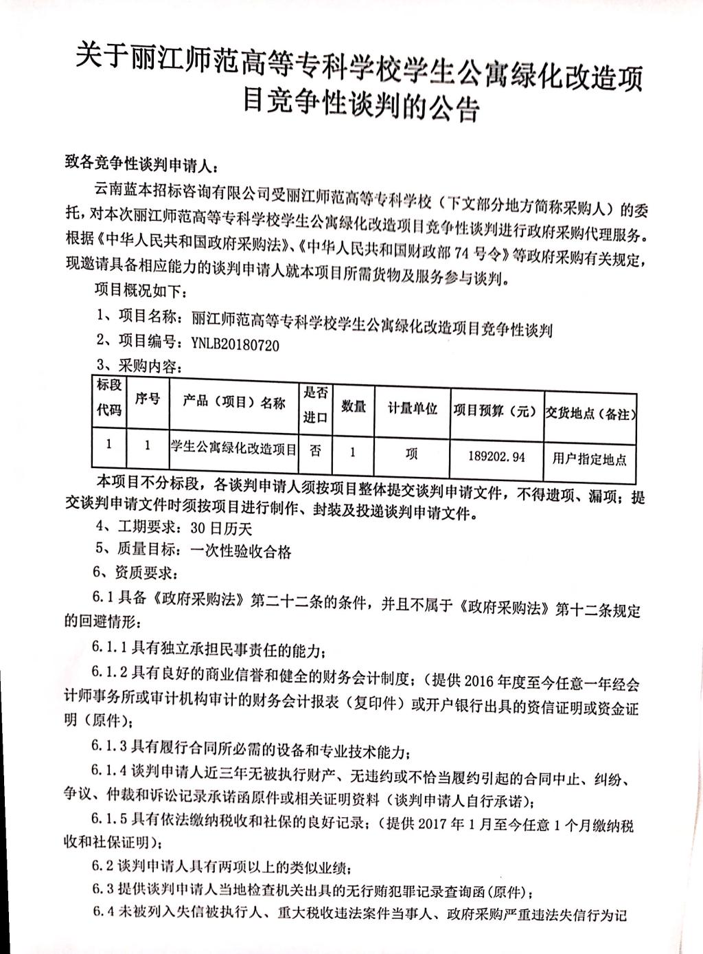 丽江师范高等专科学校学生公寓绿化改造项目竞争性谈判公告