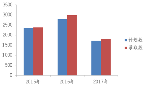 图表14 2015年至2017年招生计划完成情况