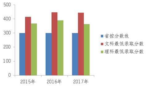 图表15 2015年至2017年最低录取分数情况