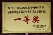 2012—2017年连续六年荣获云南省高校“毕业生就业工作目标责任考核一等奖”。2015年至2017年学生年终就业率分别为98.7%、99.8%和99.9%,直接升学率分别为9.6%、12.7%和30.8%,呈现明显上升的趋势。直接就业率分别为89.7%、69.3%、69.2%。