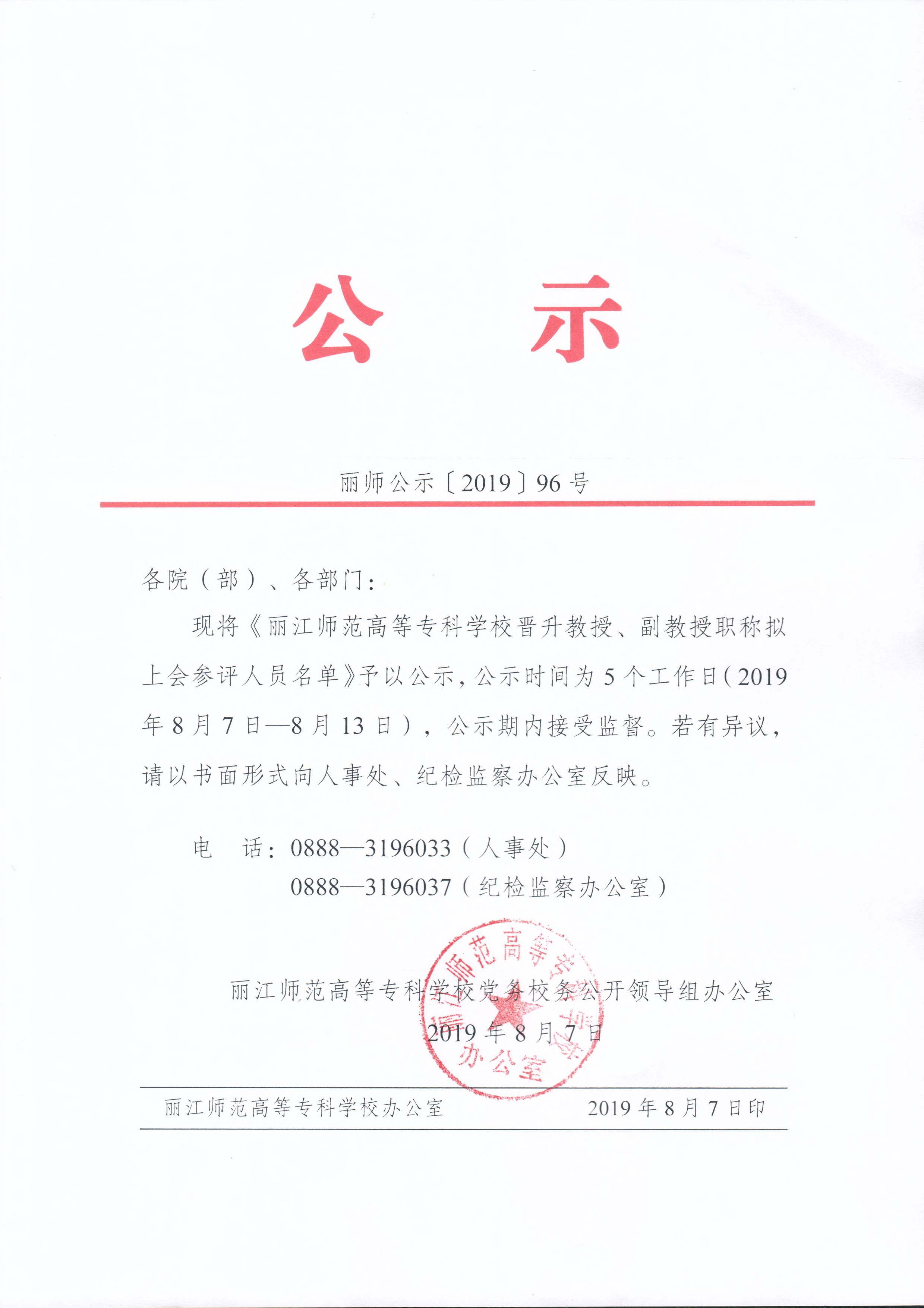 丽江师范高等专科学校晋升教授、副教授职称拟上会参评人员名单