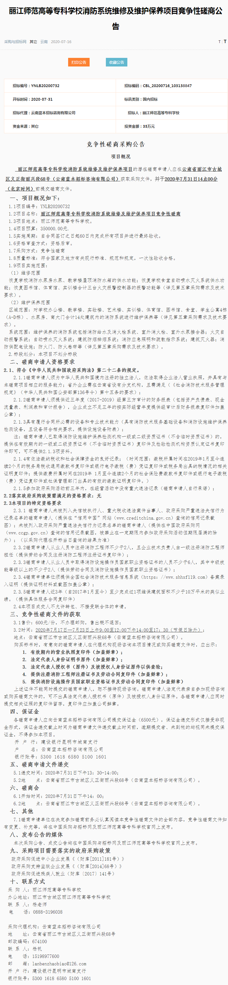 丽江师范高等专科学校消防系统维修及维护保养项目竞争性磋商公告