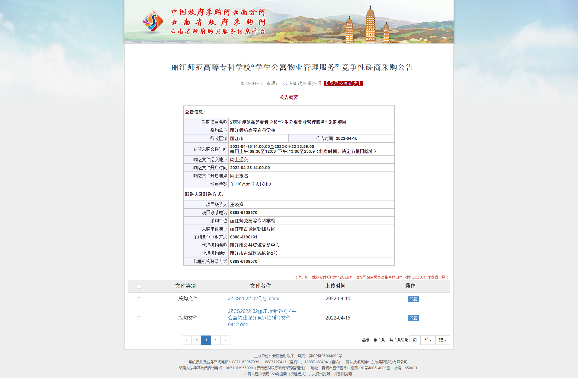 上一条:丽江师范高等专科学校2022年第一批公用房招租项目竞争性磋商结果公告 下一条:巡察公告