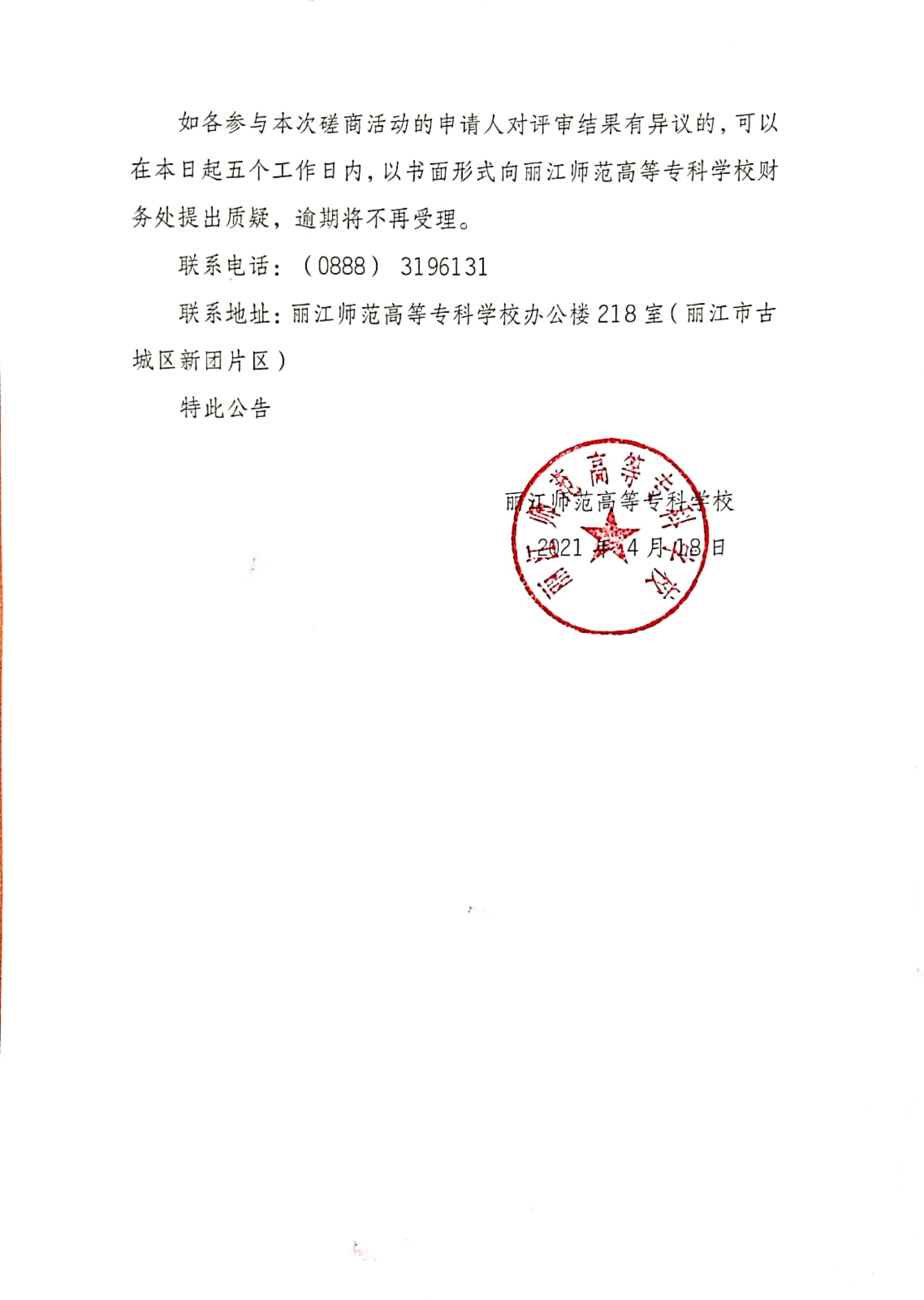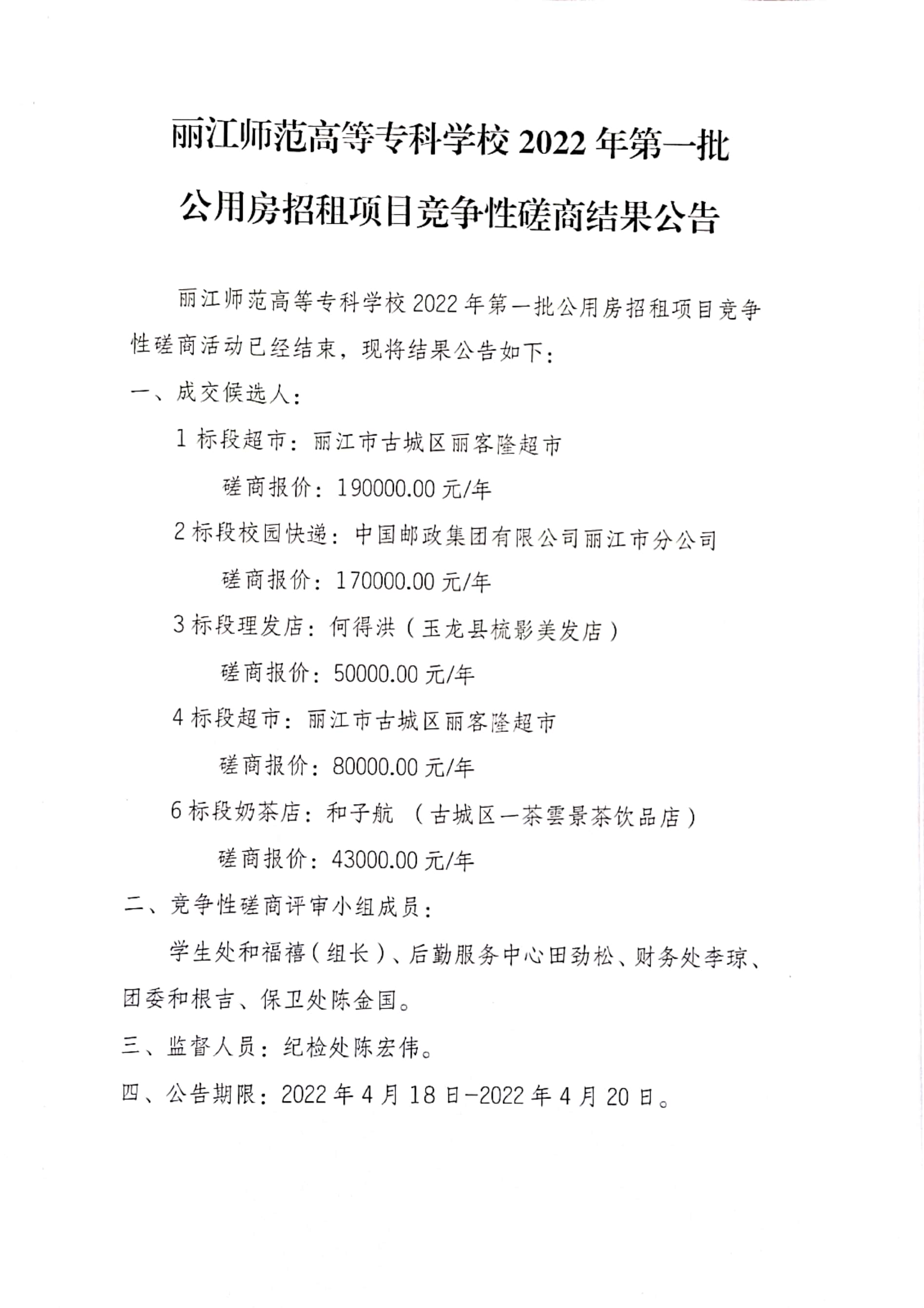 丽江师范高等专科学校2022年第一批公用房招租项目竞争性磋商结果公告