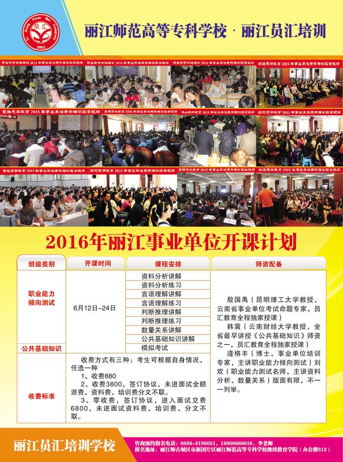 2016年丽江市事业单位考前辅导报招生简章