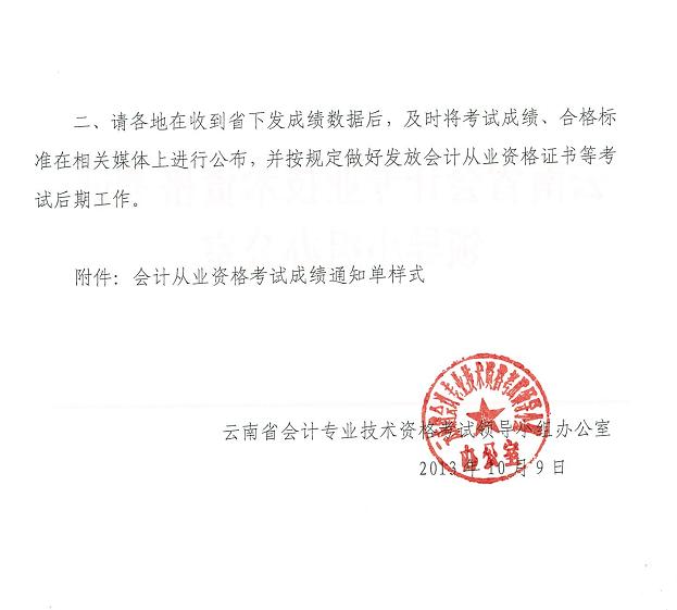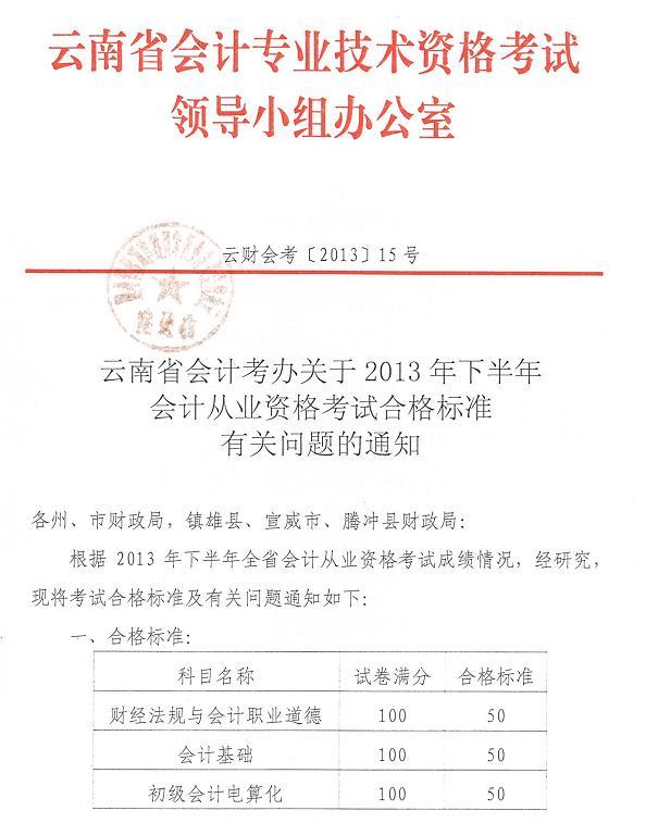 2013年下半年会计从业资格考试合格标准有关问题的通知