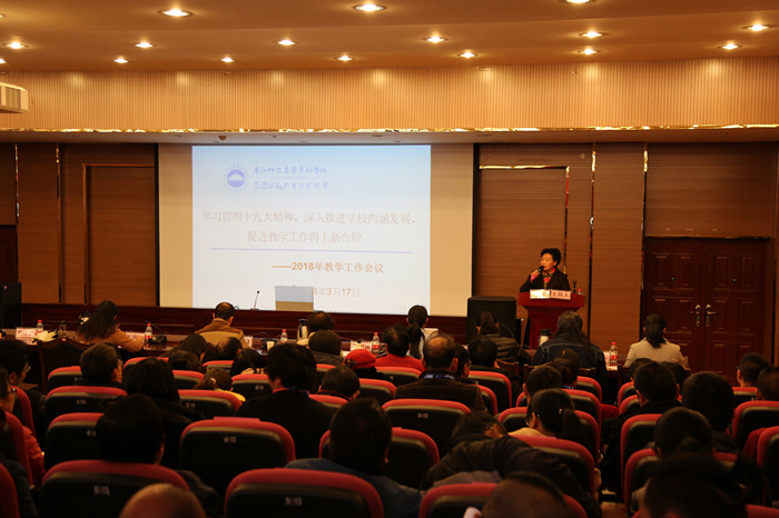 最后,党委副书记马云飞同志代表党委进行讲话,为学校教学工作提出了要求。一是要求全校教职员工加强学习,贯彻落实十九大精神,以习近平新时代中国特色社会主义思想指导学校的教学工作;二是要牢固确立人才培养中心地位,学校的改革发展各项工作都要紧紧围绕这个中心展开;三是全校上下要突出问题导向,更新观念、抓好统筹、改进方法,推动我校教育教学改革向纵深发展。