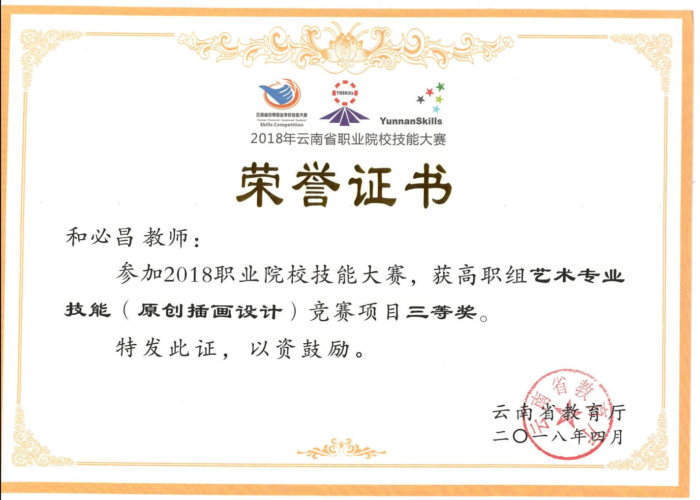 由云南省教育厅、昆明市人民政府主办的2018年云南省职业院校技能大赛于2018年4月11-17日在昆明各大承办院校举办,东巴艺术学院获得一个一等奖,两个二等奖、一个三等奖的优越成绩。