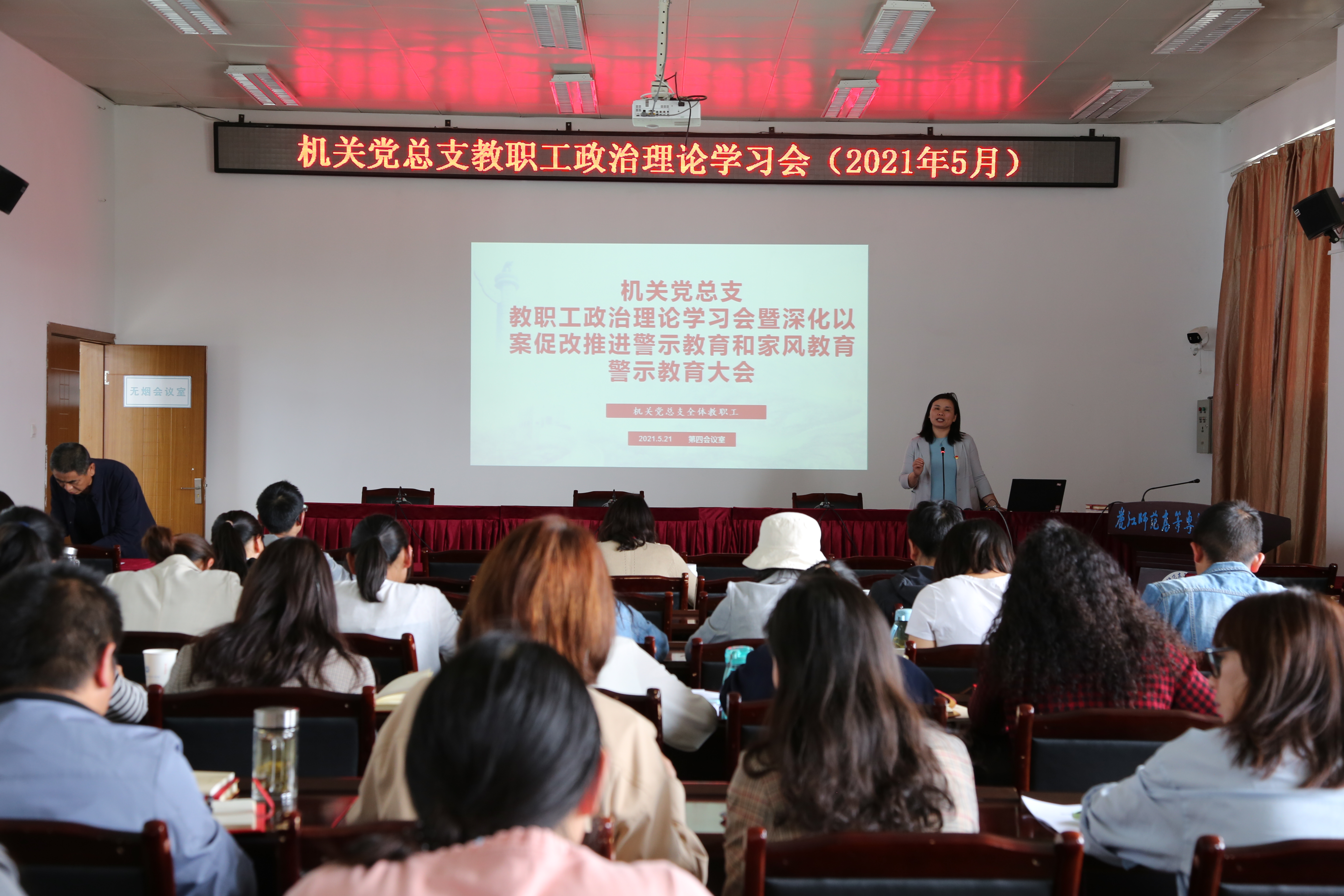 5月21日,机关党总支召开教职工政治理论学习会暨深化以案促改推进警示教育和家风教育大会。机关党总支教职工参加会议。会议由平丹同志主持。