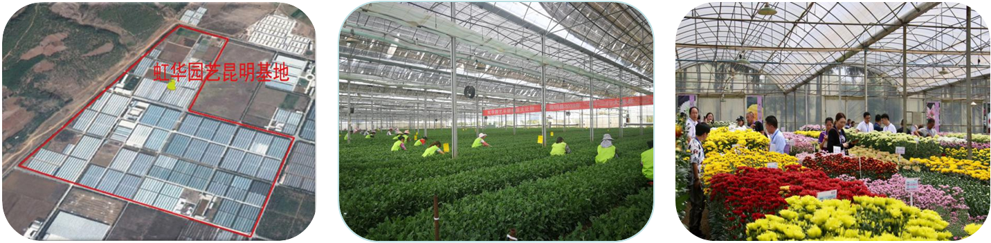 活动前由昆明虹之华园艺有限公司人力资源总监李瑞带领我校到访人员一行参观了嵩明基地。虹华园艺成立于1991年5月,主要从事园艺产品生产和销售业务。公司主打产品菊花种苗、菊花切花,以出口业务为主。目前公司初步形成“周年生产、全年供货”的稳定发展局面,在上海、海南、云南三地建有生产基地,总面积3000余亩。年产菊花种苗2.5亿株,切花菊5000多万枝,成为亚洲最大的菊花相关产品生产出口企业。年出口日本菊花种苗总量占其全球进口同类产品总量的45%以上,国内菊花种苗市场占有率高达90%以上,年单头切花菊出口量全国第一。