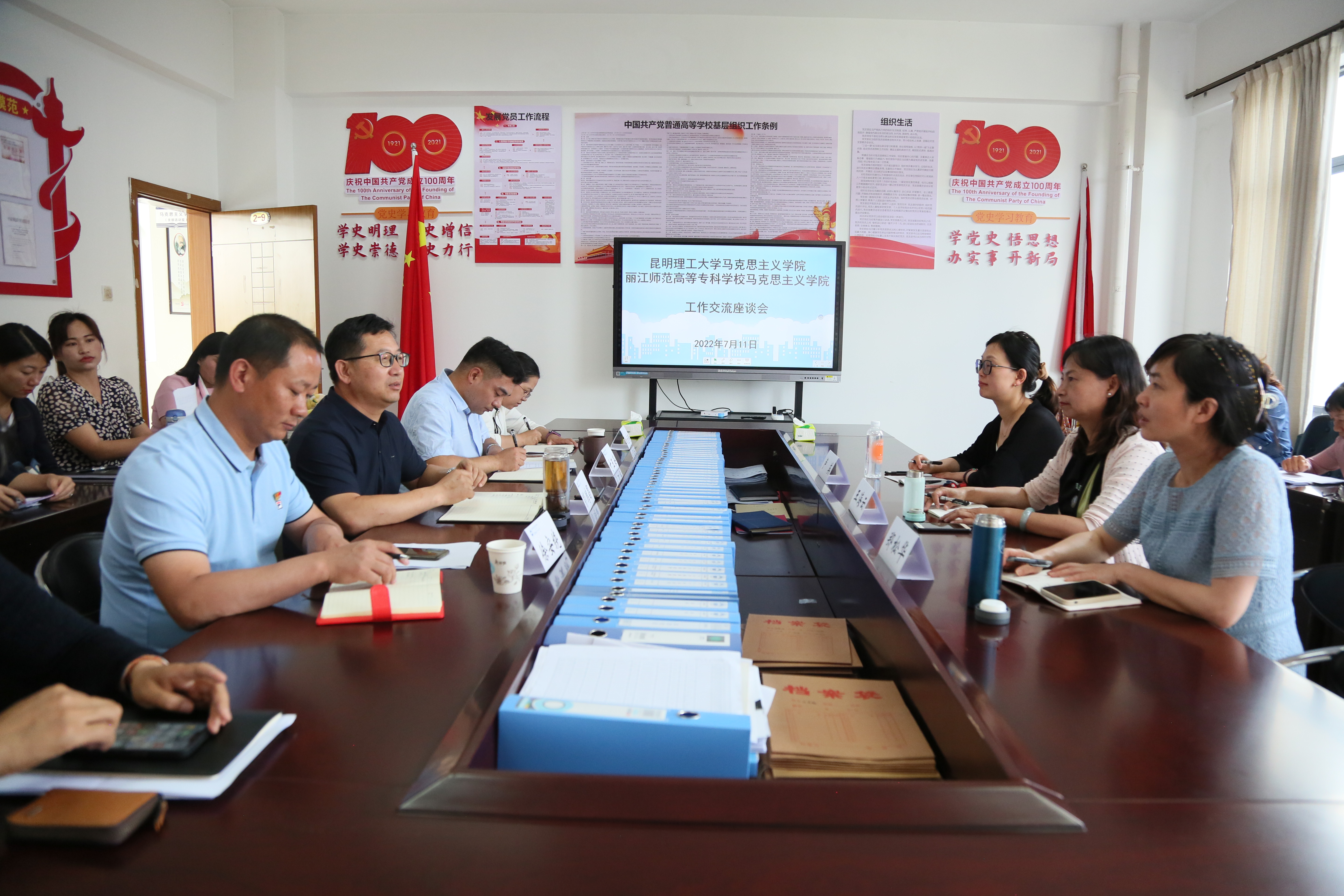 7月11日上午,昆明理工大学马克思主义学院院长王海云、综合办主任郑松华、马克思主义中国化教研中心主任卢英一行三人到学校马克思主义学院考察交流,并召开座谈会。学校党委副书记彭鸿昌、统战部副部长徐安绕、民族文化研究中心主任木春燕以及马克思主义学院全体教师参加了座谈会。座谈会由彭鸿昌主持。