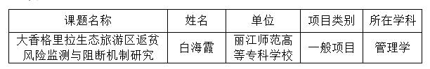 9月13日,全国社科规划办公示了2022年度国家社科基金立项情况,学校旅游与经济管理学院副教授白海霞主持的“大香格里拉生态旅游区返贫风险监测与阻断机制研究”获得一般项目立项。这是学校自2019年以来连续四年获得国家社科基金项目立项。