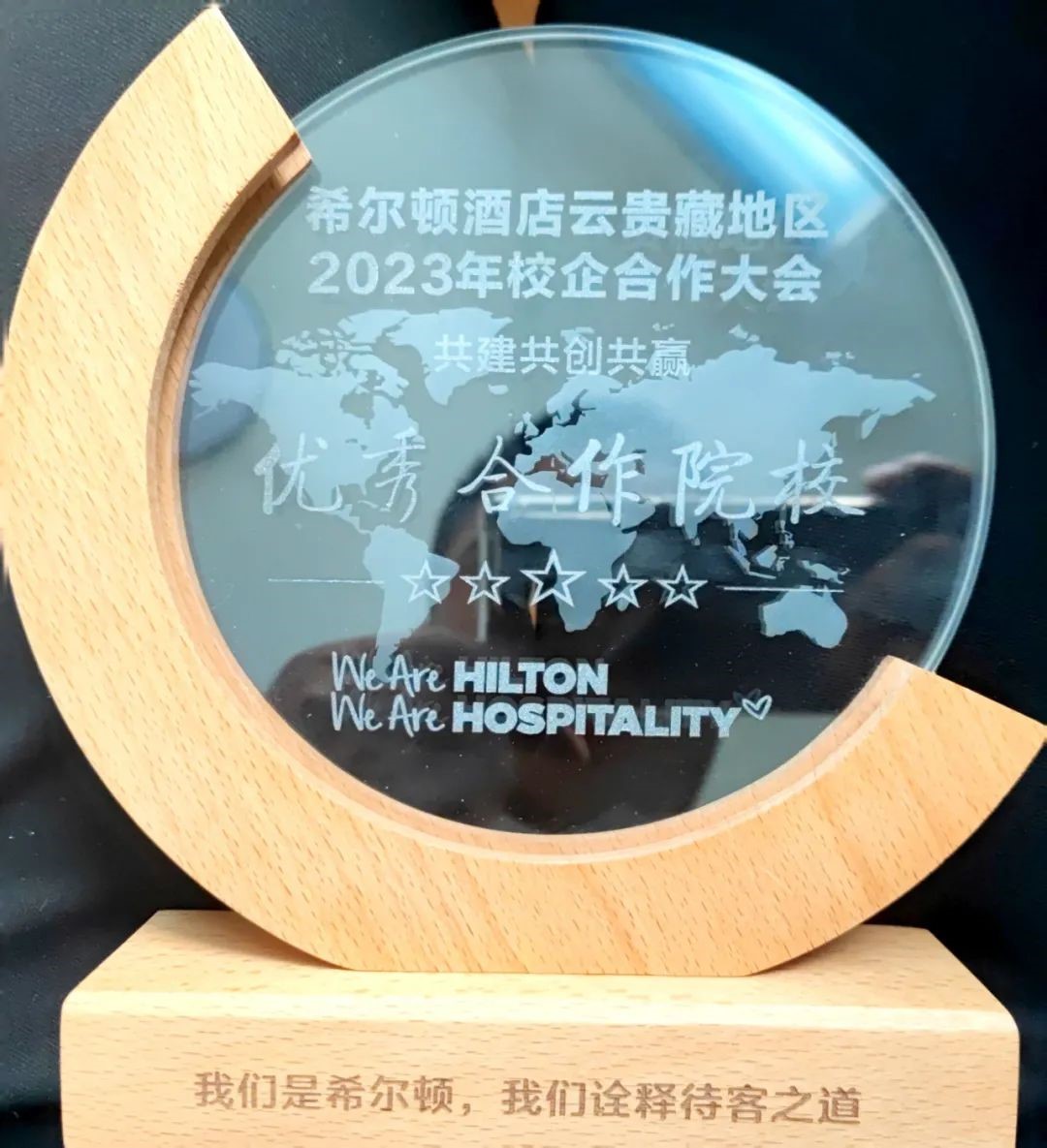 我校荣获“希尔顿酒店认可-优秀合作院校”奖牌。希尔顿酒店集团与会领导为我校颁发奖牌,并与新建立合作关系的6所院校进行了现场签约。