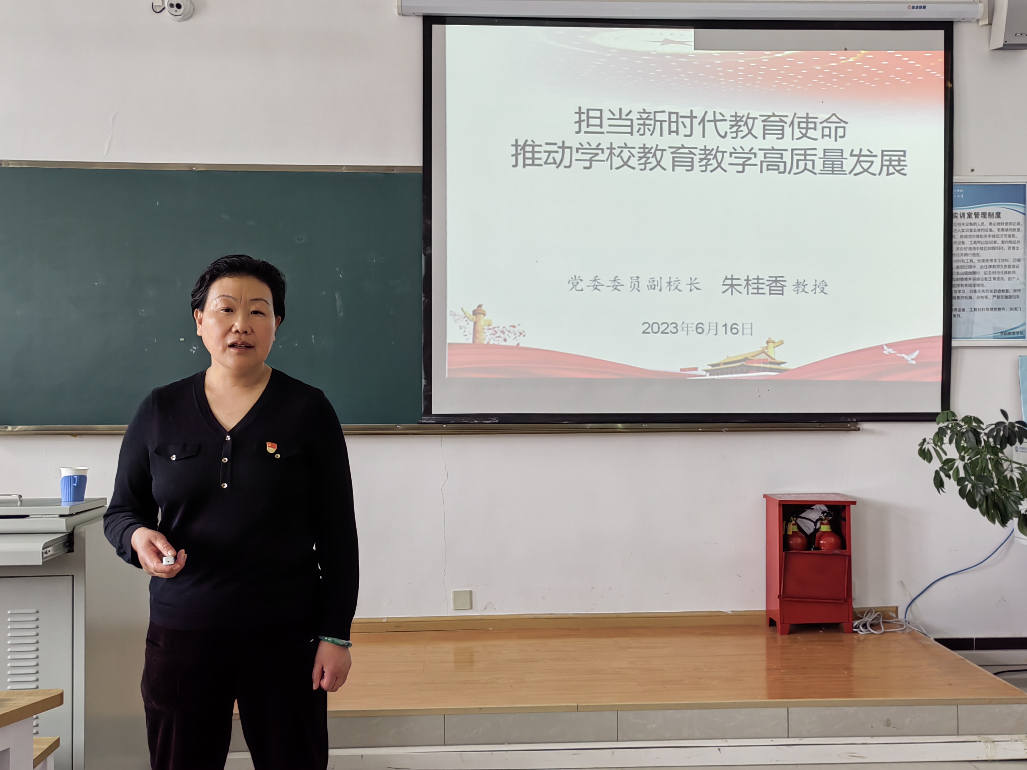 6月16日下午,学校党委委员、副校长朱桂香在求是楼110为学前教育学院全体党员教师讲授主题为“担当新时代教育使命 推动学校教育教学高质量发展”的党课。