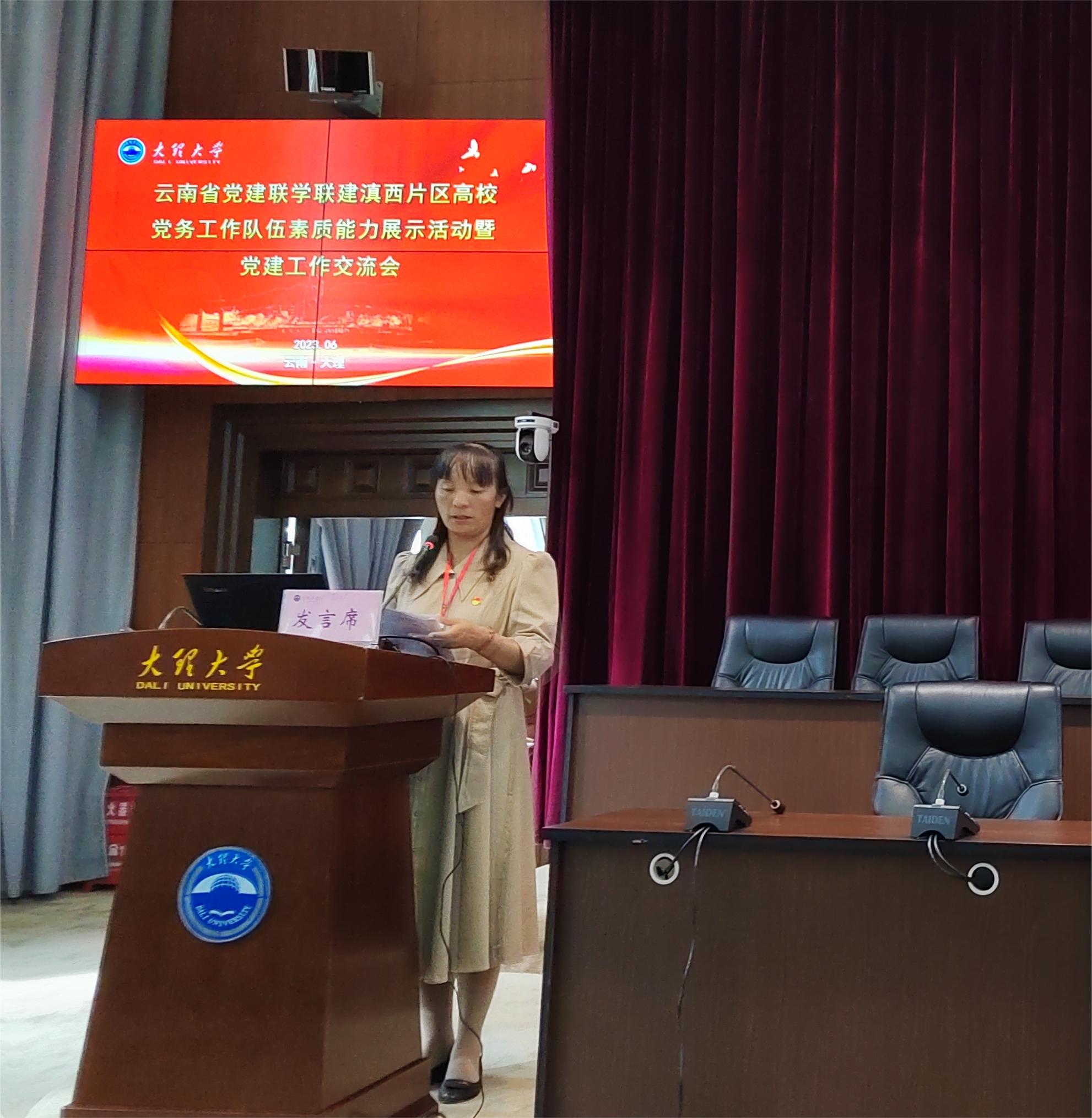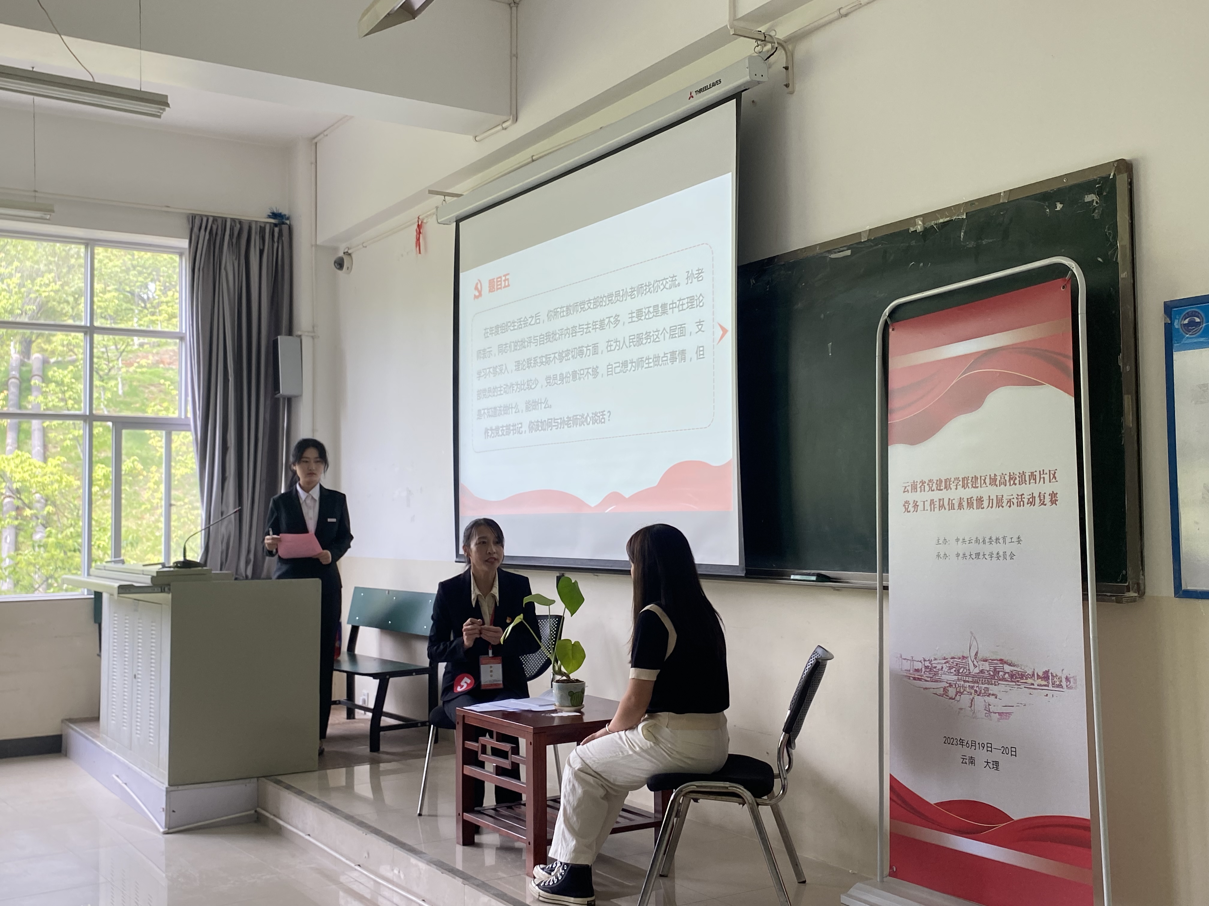6月19日—20日,云南省党建联学联建滇西片区高校党务工作队伍素质能力展示活动(复赛)暨党建工作交流会在大理大学古城校区举行,来自滇西片区16所高校推荐的参赛队员参加活动,43名党务工作者分为“双带头人”教师党支部书记组、学生党支部书记组、专职组织员组三个组分别进行了评比和展示,经过党务工作创新案例和谈心谈话环节的比赛,评出各组一等奖2名、二等奖4名、三等奖6名,我校2名参赛选手胡荣、自菊春荣获二等奖。