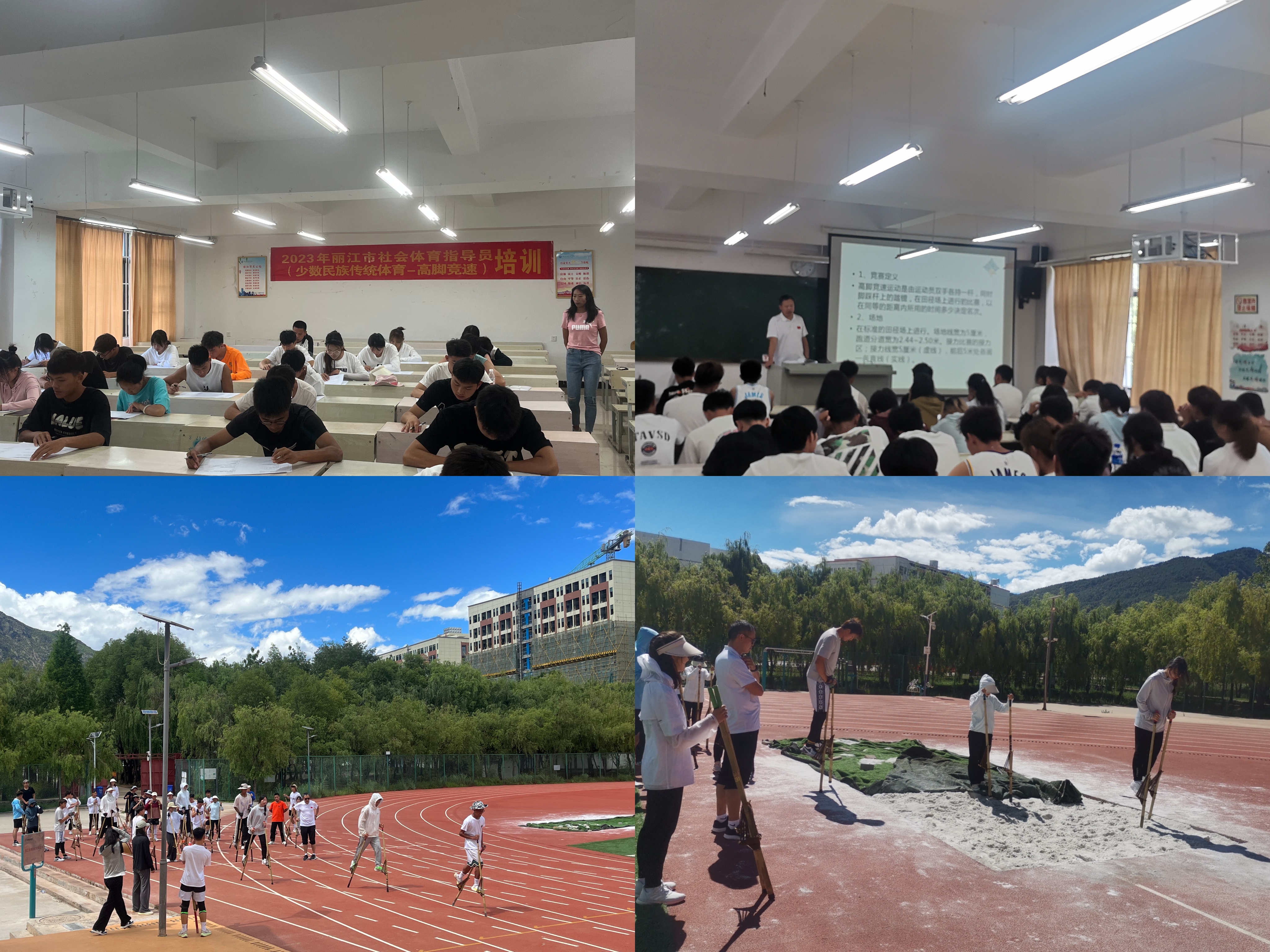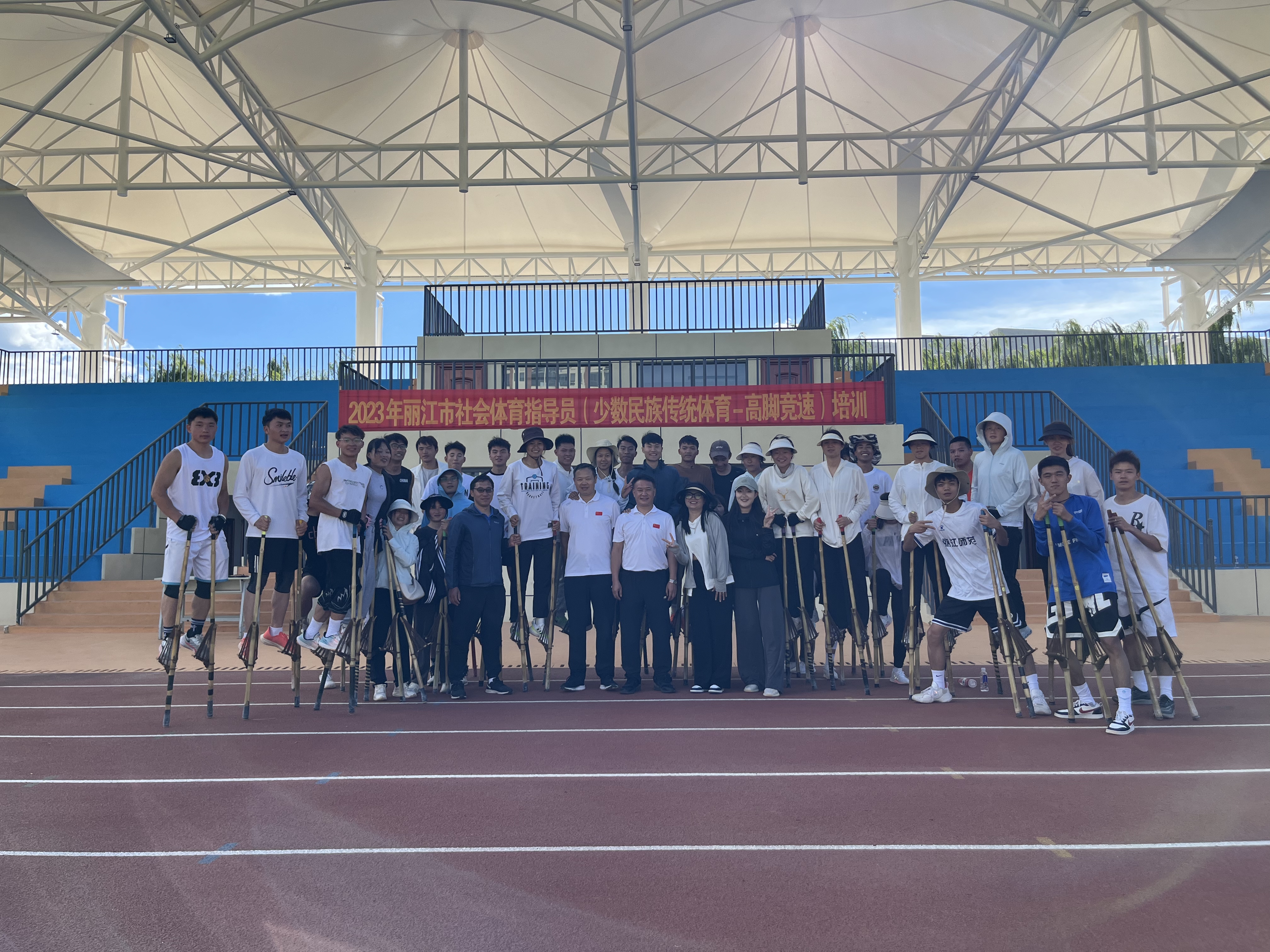 2023年7月1日—7月2日,在丽江市教育体育局的支持下,我校成功举办2023年丽江市社会体育指导员(少数民族传统体育—高脚竞速)培训。云南民族大学体育学院副院长胡应国副教授、单庆兵副教授,我校和永杰副教授、和晓云担任培训讲师。本次培训通过理论讲授、实操训练、考核评价等方式为参训的40名学员开展了少数民族传统体育-高脚竞速项目理论知识和实践方法的培训。