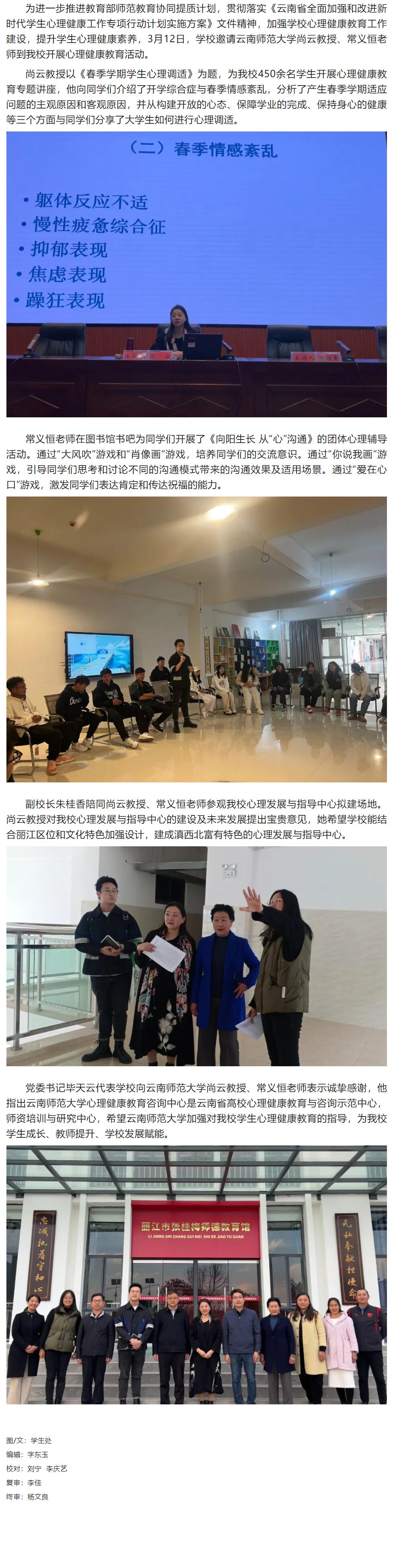 协同提质|云南师范大学尚云教授一行到我校开展心理健康教育活动
