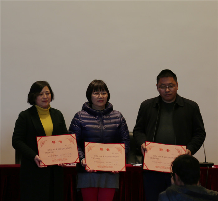 和克纯副校长宣读我校关于聘任12位同志专业技术职务的通知,3名老师聘任为教授,9名老师聘任为副教授;张洪波校长一一为其颁发了证书。