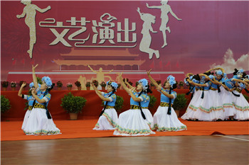 9月29日下午,我校在体育馆举行“2017年迎新生庆国庆文艺演出”。校长张洪波,党委副书记马云飞,副校长朱桂香,各学院、部门领导和2017级全体新生欢聚一堂,共同庆祝新中国成立68周年,师生们用一个个精彩的节目歌颂党的光辉历程,歌颂祖国的繁荣富强,表达对祖国无限热爱和美好祝福。