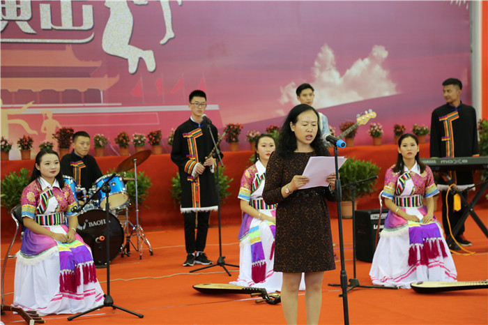 68年繁荣昌盛的画卷,我们一起描绘,68年春华秋实的收获,我们一起分享,56个民族在党的领导下同甘共苦一起走向繁荣富强。丽江是少数民族聚居地,学校共有32个少数民族,大家和睦相处,是丽江民族团结的缩影。民族风情浓郁的歌舞讴歌了各民族在党的带领下携手共进砥砺前行。