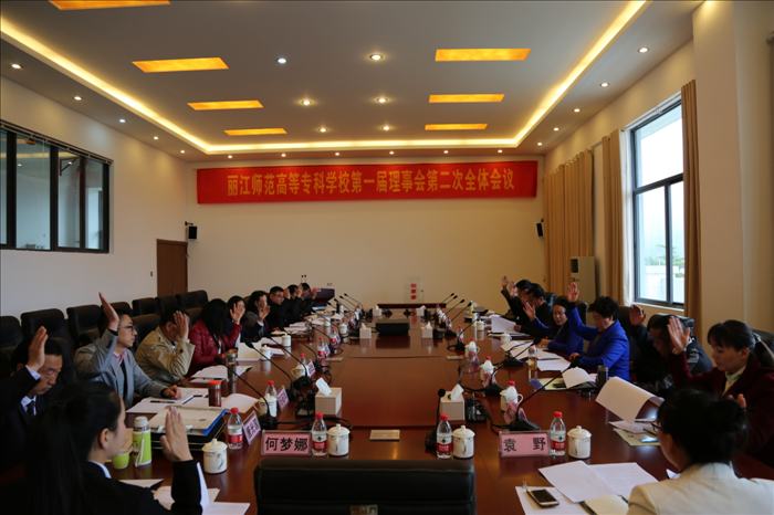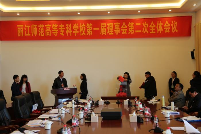 9:00—9:10召开预备会,参会理事一致讨论通过《丽江师范高等专科学校第一届理事会第二次全体会议议程(草案)》。