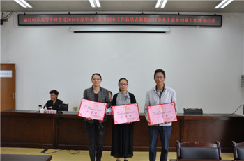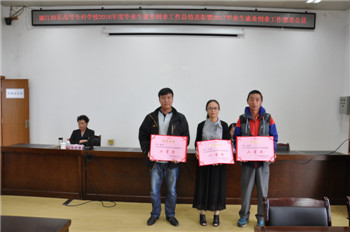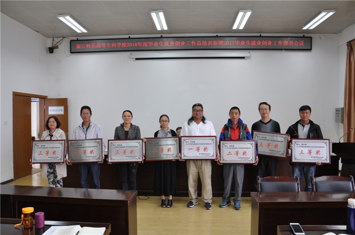 随后蒋成旭书记宣读了《丽江师范高等专科学校关于表彰2016年度毕业生就业创业工作目标责任考核先进单位的决定》,2016年就业创业工作综合考核奖:艺术系获一等奖,体育系、生科系获二等奖,中文系、数计系、外语系、旅经系、教科系获三等奖;就业创业质量奖:外语系获一等奖,生科系、旅经系获二等奖;应征入伍工作先进集体奖:生科系获一等奖,体育系、数计系获二等奖;大学生志愿服务西部计划工作先进集体奖:数计系获一等奖,教科系、生科系获二等奖;创新创业先进奖:艺术系获一等奖,体育系、中文系获二等奖。