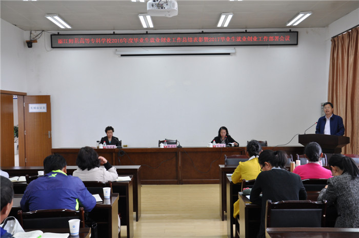 5月27日下午14:30,我校在办公楼第四会议室召开2016年度毕业生就业创业工作总结表彰暨2017年毕业生就业创业工作部署会议,校党委书记蒋成旭、校长张洪波、副校长朱桂香出席会议,就业工作领导小组成员、各系系主任及总支书记、学生科长、辅导员参加会议,会议由张洪波校长主持。