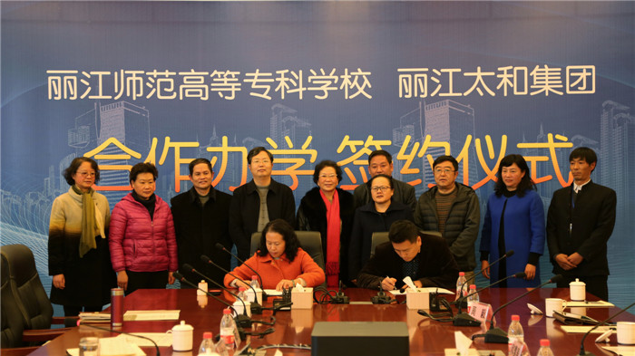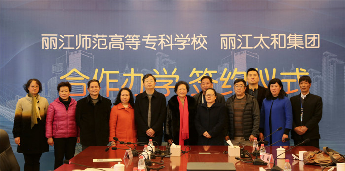 2017年1月13日下午,我校与丽江太和集团合作办学签约仪式在第三会议室举行,校长张洪波与丽江太和集团董事长和昊乾签定合作办学协议。丽江市人民政府正厅级巡视员张荫林出席并讲话,丽江市人民政府副市长李建英,丽江市发展改革委员会、丽江市体育局、丽江市教育局的领导及太和集团的领导出席签约仪式。会议由党委书记蒋成旭主持。