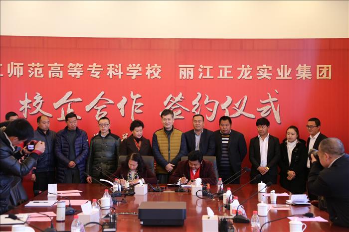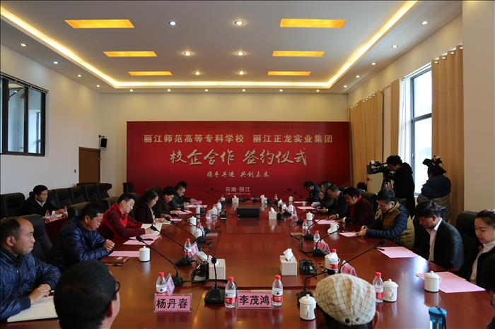 3月21日下午,我校与丽江正龙实业集团校企合作签约仪式在学校办公楼第三会议室举行,中国村社发展促进会副会长沈泽江、我校校长张洪波、副校长朱桂香、玉龙县工商联主席(总商会会长)丽江正龙实业集团董事长杨四龙和中国村社发展促进会办公室副主任赵梓成、会长助理彭洁锞出席会议,我校党政办、教务处、科技处、学生处、民研中心、艺术系、外语系、旅经系负责人和正龙实业集团董事长助理以及下属企业、部门负责人参加会议,会议由朱桂香副校长主持。