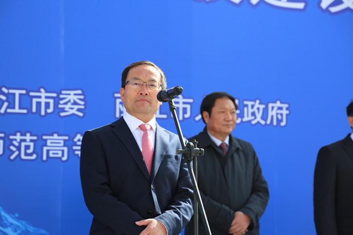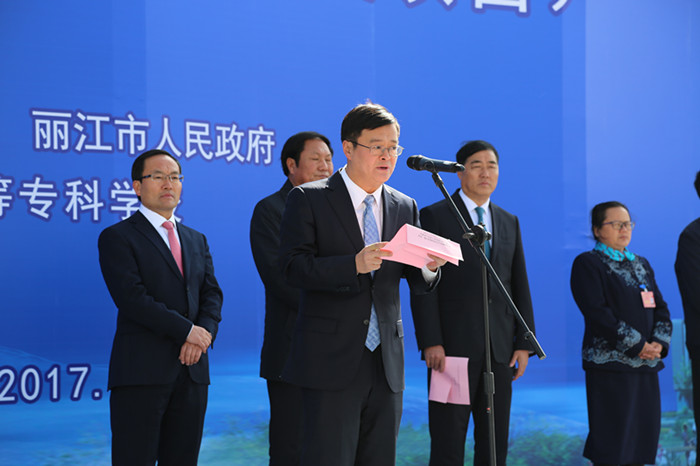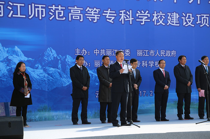 丽江市人民政府市长郑艺、市委副书记刘佳晨、市人大常委会主任和炳寿、丽江市委常委、宁蒗县委书记杨承新、副市长李建英等领导出席了开工仪式。丽江市委常委、常务副市长和春雷主持开工仪式。丽江市四县一区相关领导、全校副科级以上干部、项目施工单位代表参加了开工仪式。
