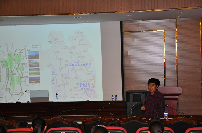 随后,请蒋广峰博士向新团完小师生作“大美丽江 保护环境”专题讲座。蒋广峰博士以丽江山川、河流、湖泊为立足点;以丽江特有植物资源为线索;以生活为案例;全面向新团完小师生科普环境保护知识。