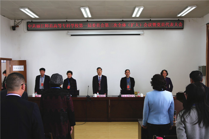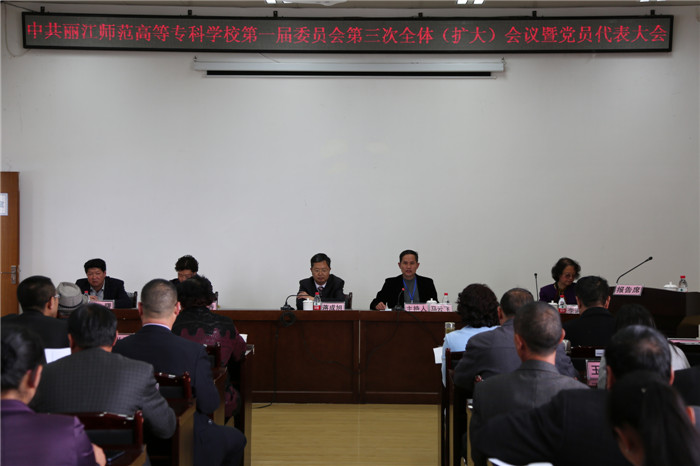 4月22日,中共丽江师范高等专科学校第一届委员会第三次全体(扩大)会议暨党员代表大会在办公楼第四会议室隆重召开,本次大会应到会正式代表82人,实到会正式代表76人,会议由党委副书记马云飞主持。