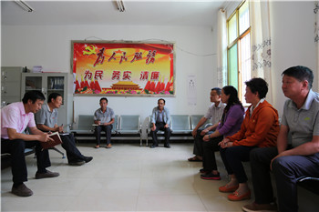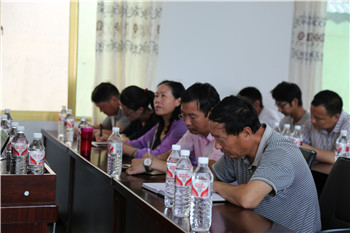 学校领导在党课后与村委会党员干部座谈,了解扶贫攻坚情况以及学校驻村干部情况。