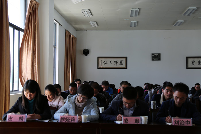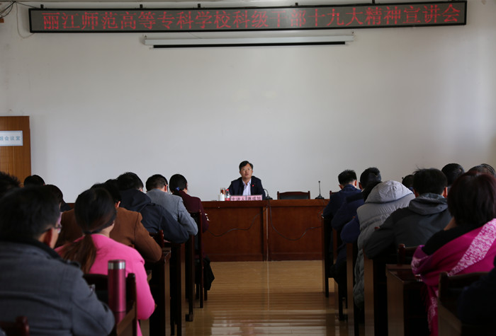 11月1日下午,学校党委书记蒋成旭在第四会议室给学校科级干部作十九大精神宣讲。