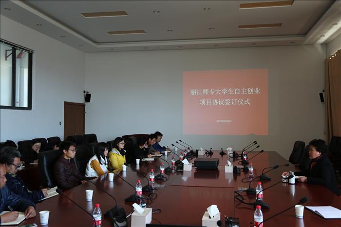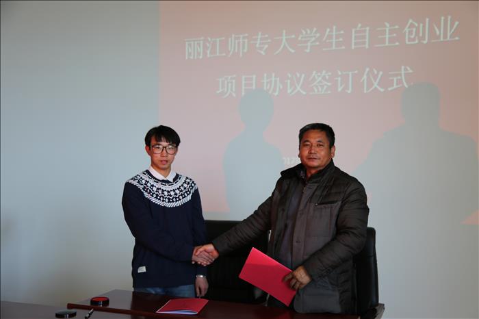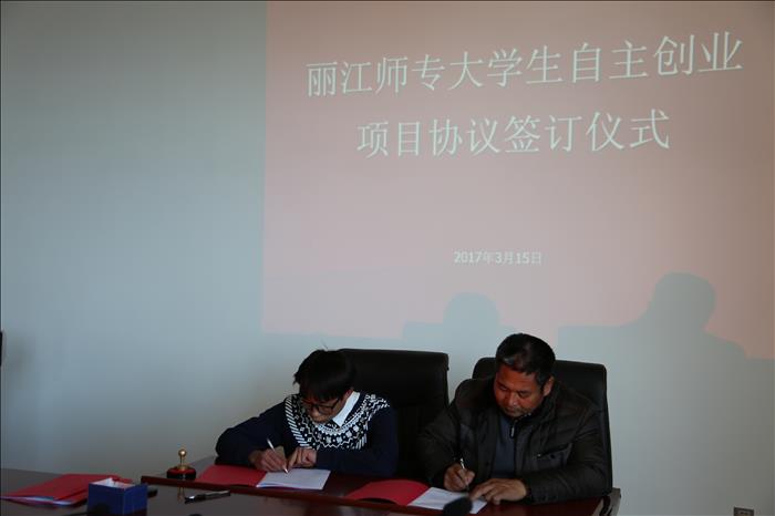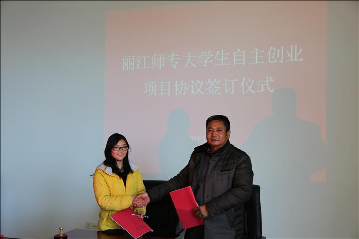 随后招就处处长与三个项目团队负责人签订了《丽江师范高等专科学校校园自主创业项目协议书》。