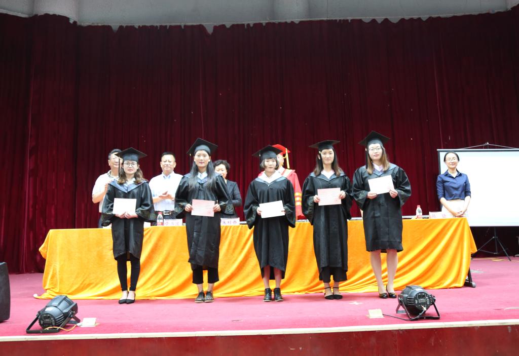 马云飞宣读了省级优秀毕业生表彰文件,主席台就坐领导为获得“省级优秀毕业生”称号的同学颁发了奖状。