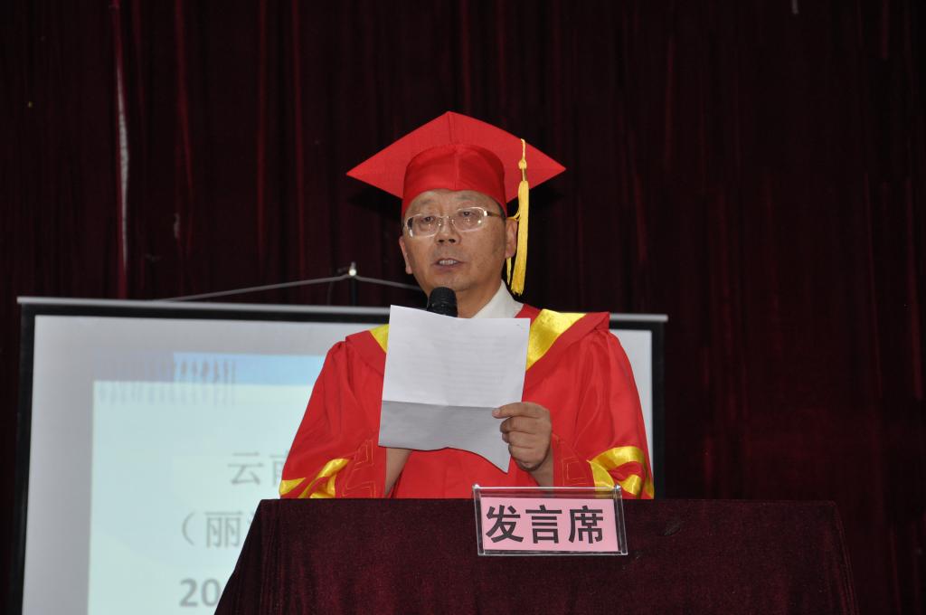 在庄严的国歌声中,典礼拉开帷幕。云南民族大学副校长段钢为毕业生送上了祝福。