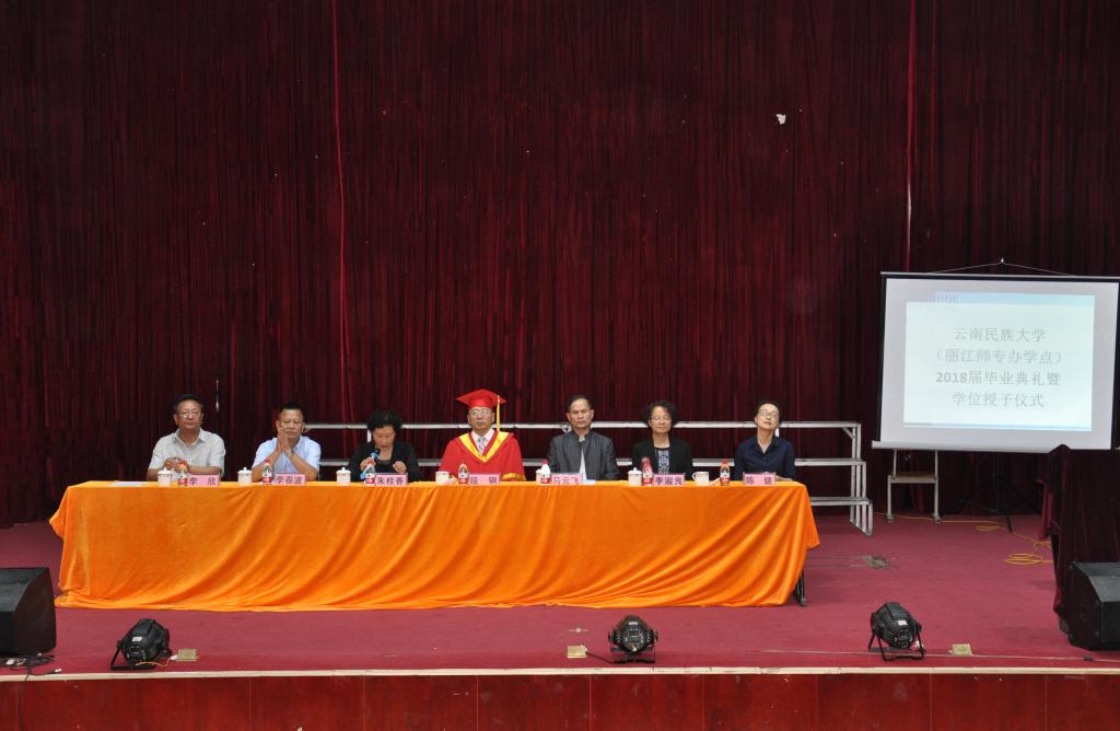 6月20日下午14:30,云南民族大学(丽江师范高等专科学校办学点)2018届本科生毕业典礼在我校艺术楼演播厅举行。