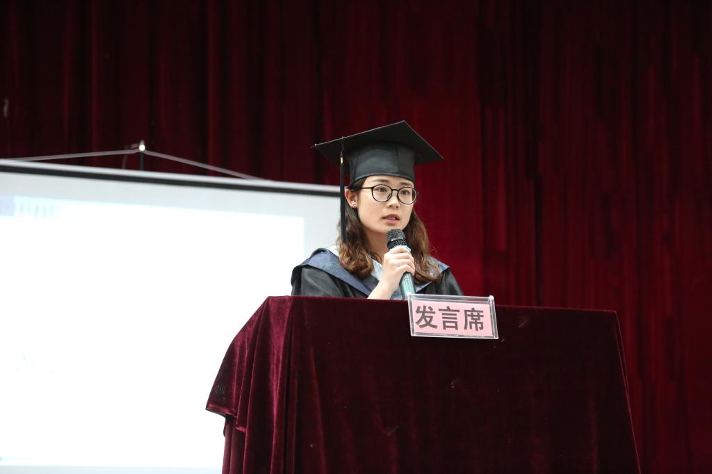 教师代表、“2017年度最关爱学生的班主任”唐湖教授叮嘱学生“把教育当作一种心爱的事业,视学生为自己的儿女;确立人生方向,让学生在专业学习中健康成长。”“新时代为实现你们的梦想提供了越来越多的实践平台,希望你们不忘初心,继续追逐梦想。”省级优秀毕业生代表、教师教育学院马欢同学代表所有毕业生对老师和母校表达了感谢之情“学校的学风学气、学习理念将使我们终身受益,我们不仅学到了知识,而且学会了怎样做人,做一个勤奋、诚实的人,这是学校给我们最大的财富” 。