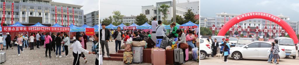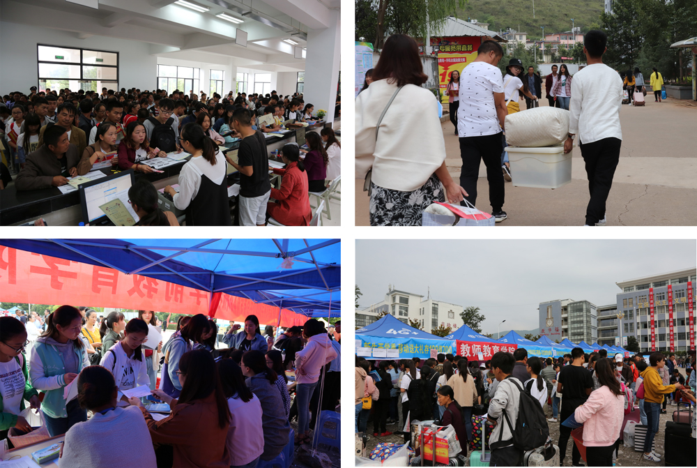 凌晨5点,校团委、学生处工作人员和学生志愿者就已等候在丽江火车站、丽江新客运站、丽江高快客运站迎接新生的到来,接到新生后把他们有序地送上开往学校的专车。早上7:30我校迎来了一大波朝气蓬勃的新面孔,第一批新生到达学校,各学院学生志愿者热情接待并迅速带领他们办理入学手续。