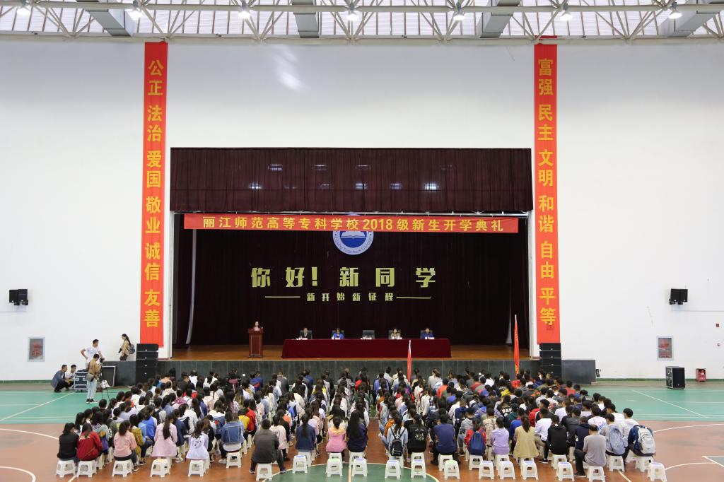 张洪波首先代表全校师生员工,对新同学的到来表示热烈欢迎,祝愿同学们在丽江师专扬起理想的风帆,挥洒青春的汗水,顺利到达梦想的彼岸。她说,“从今天开始,你们将在美丽的丽江,青青的校园开启新的人生旅程。在这里,你们将浸润在深厚的文化积淀中,体会“德高业实,丽泽三江”的校训,践行“博学弘德,励志笃行”的校风,你们会在不知不觉中深深烙上丽江师专的印记。”“我相信,你们将在这里收获最美好的大学生活。”