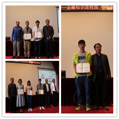 对金融知识进校园“金融杯”文案设计大赛的获奖同学进行表彰。此次“金融杯”文案设计大赛设有一等奖一名,二等奖二名,三等奖3名,共收到我校同学的投稿作品80余份。