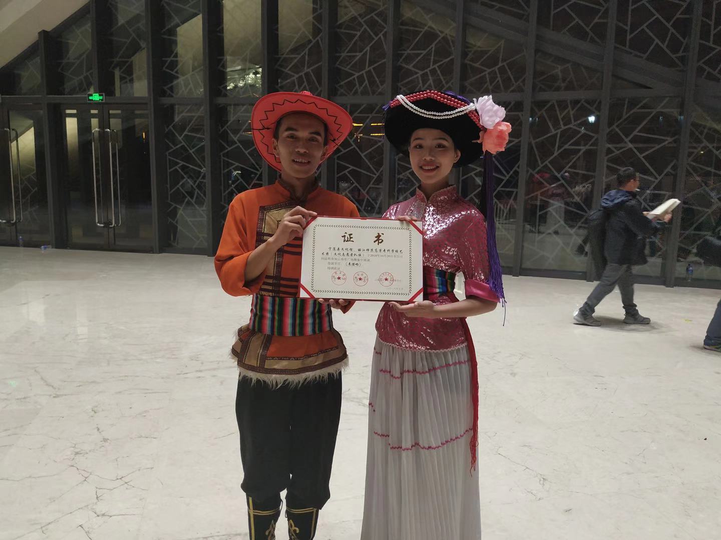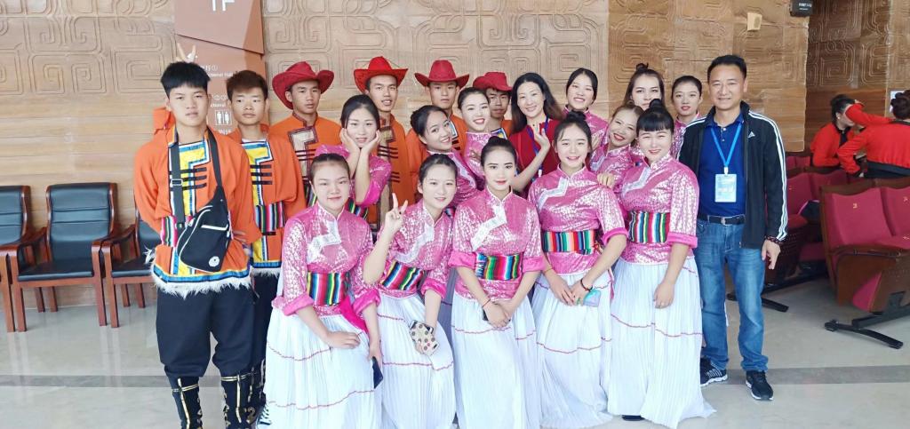 经过2018年全国广场舞展演丽江市集中展演,丽江市推荐上报的5个广场舞作品经2018年全国广场舞展演云南省集中展演组委会筛选,最终宁蒗县文化馆、丽江师范高等专科学校艺术团的《来蹉哟》节目入选省级集中展演。10月19日—22日全省44支广场舞团队在云南大剧院广场、西山区碧鸡文化广场分别进行广场舞集中展演,于10月20日晚在云南大剧院广场主会场与其他21支广场舞队伍同台展演竞技;10月21日在西山区碧鸡广场进行广场舞展演。最终,我校同学们以出色的表现圆满完成此次展演活动。