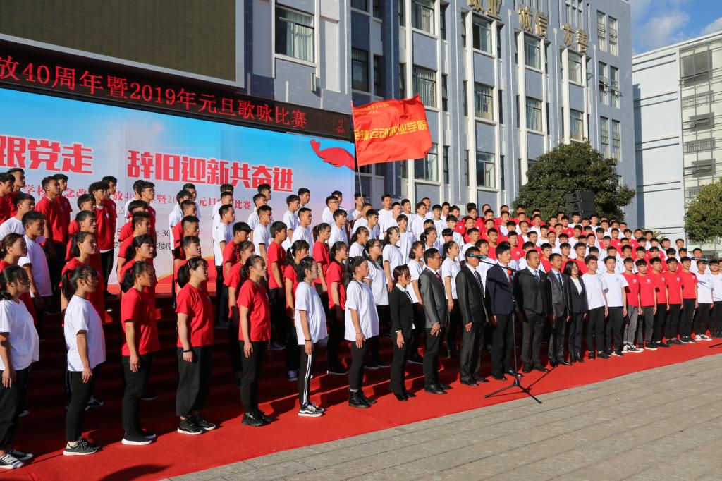 一元复始,知岁月;万象更新,长精神。岁末年初,为隆重纪念改革开放40周年,振奋全校师生精神,弘扬改革创新精神,12月29日下午,我校在学校南广场举行庆祝改革开放40周年暨2019年元旦歌咏比赛。校长张洪波出席活动并致辞,党委副书记马云飞、纪委书记李淑良、副校长朱桂香、调研员杨华明等出席活动。