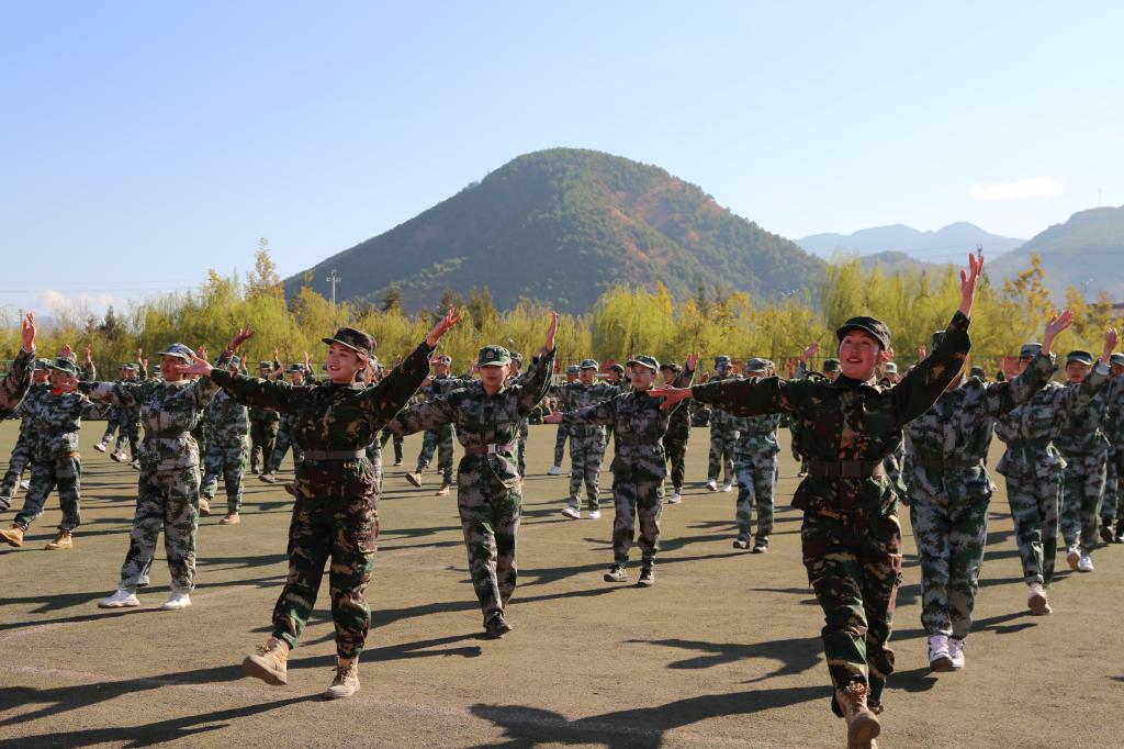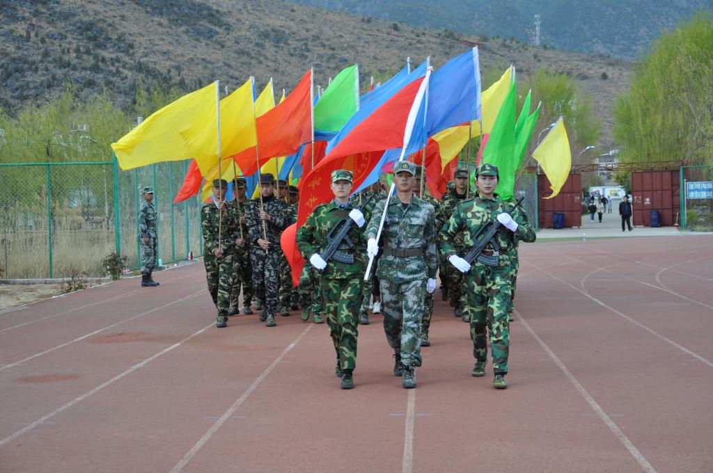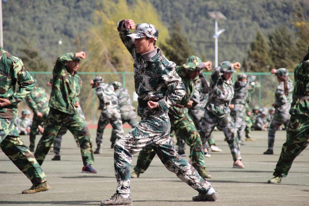 随后,学员们进行了队列操、军体拳、捕俘刀、藏族舞蹈等汇报表演。学员们掷地有声的口号,刚劲有力的踢脚勾拳,娴熟连贯的军体动作,变换万千的花样队列,活灵活现的字符图案,尽显奋发向上的精神风采。