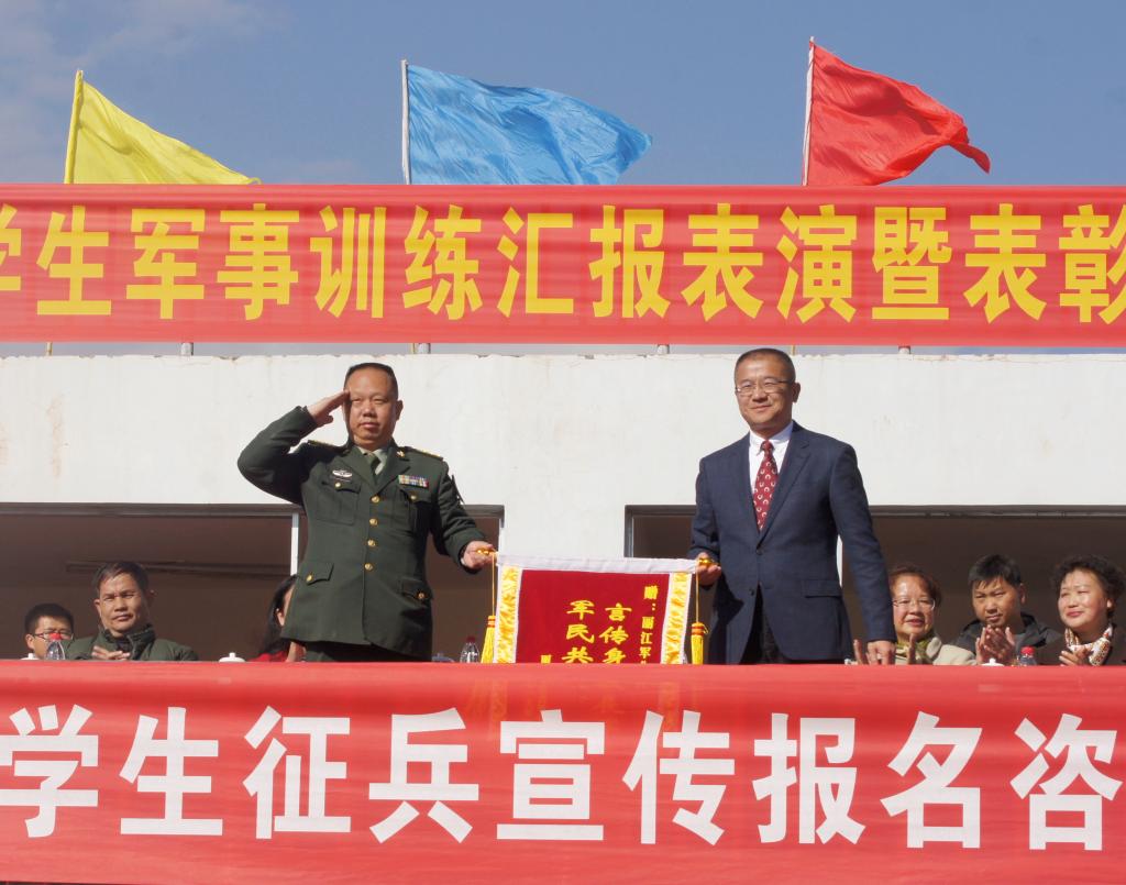 张祖武书记为承训丽江军分区赠送了锦旗。