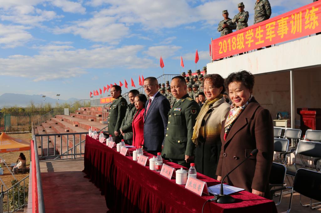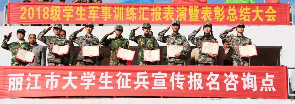 3月10日上午,我校2018级学生军事训练汇报表演暨总结表彰大会在足球场举行。承训单位丽江军分区战备建设处处长刘嘉兴上校,我校党委书记张祖武、校长张洪波、党委副书记马云飞、副校长朱桂香、纪委书记李淑良,党委委员、足球运动职业学院院长王曙出席大会,学校相关职能部门负责人、承训教官、辅导员、教师代表参加大会。大会由朱桂香主持。